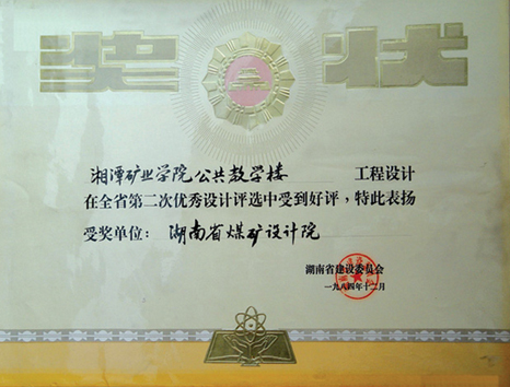 湖南省優秀設計項目二等獎(1984)